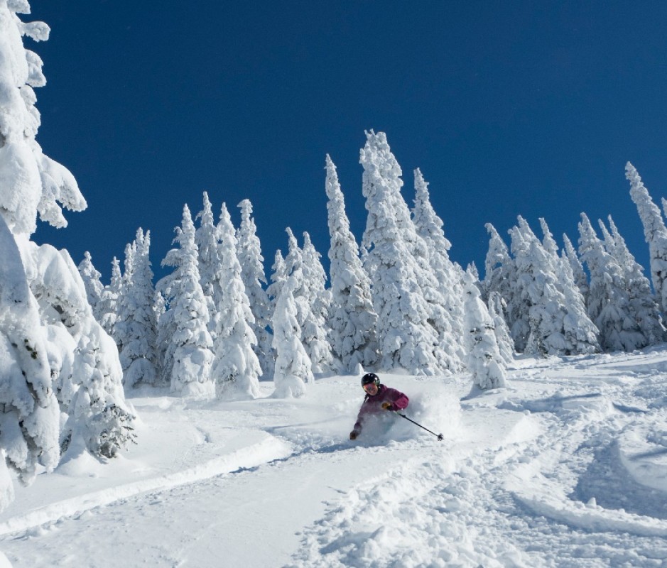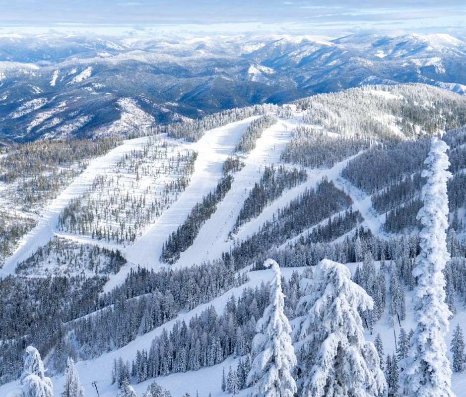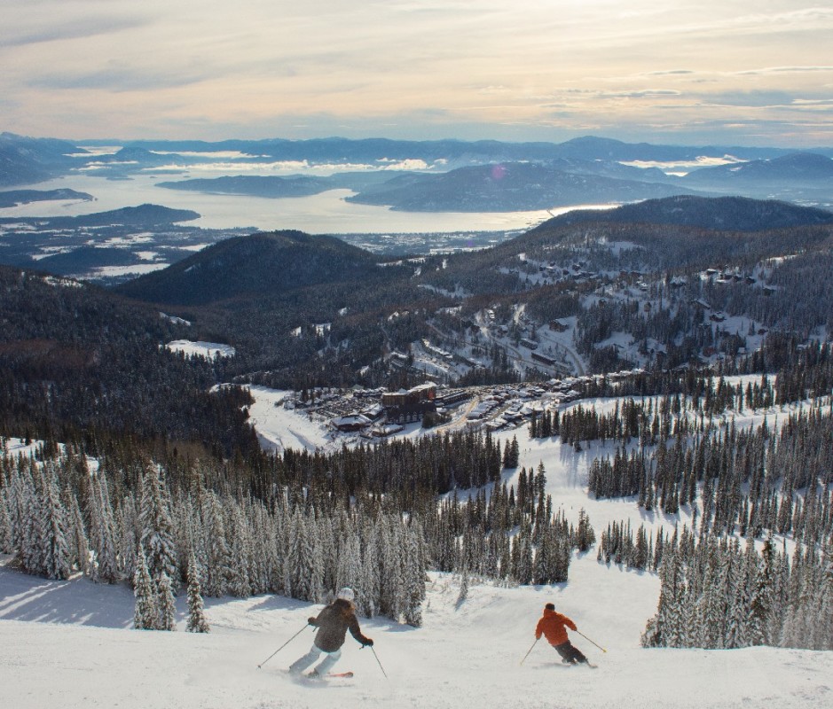 Schweitzer Mountain, located just north of Coeur d’Alene near Sandpoint, offers 2,900 acres of skiable terrain with everything from groomers and glades to big expansive bowls and one of the more gorgeous vistas from the top of any ski hill. Nearly 100 trails descend 2,000 feet above scenic Lake Pend Oreille, offering a nice mix of beginner to expert terrain. Schweitzer’s village offers convenient lodging, food, spas, and shopping. Check out the mountain’s brand new Humbird Hotel and the Crow’s Bench for great food and drinks in a relaxing, stunning setting.